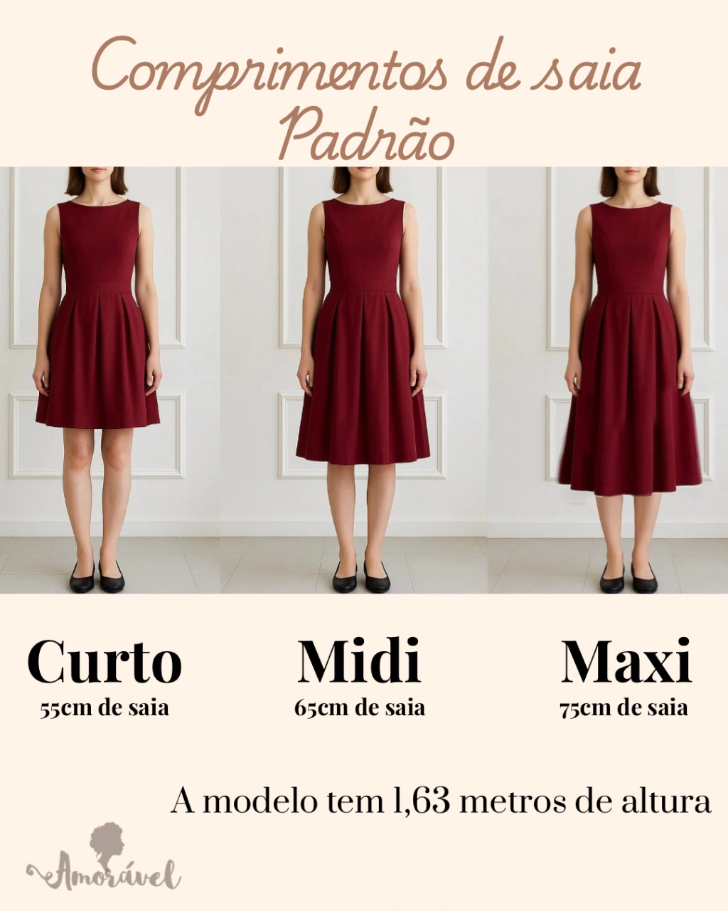 Para um ajuste mais preciso (sem alterar a modelagem padrão), informe suas medidas de busto e cintura no campo de comentários ao finalizar a compra. Se não as tiver agora, não há problema, pode fechar a compra e enviar depois!